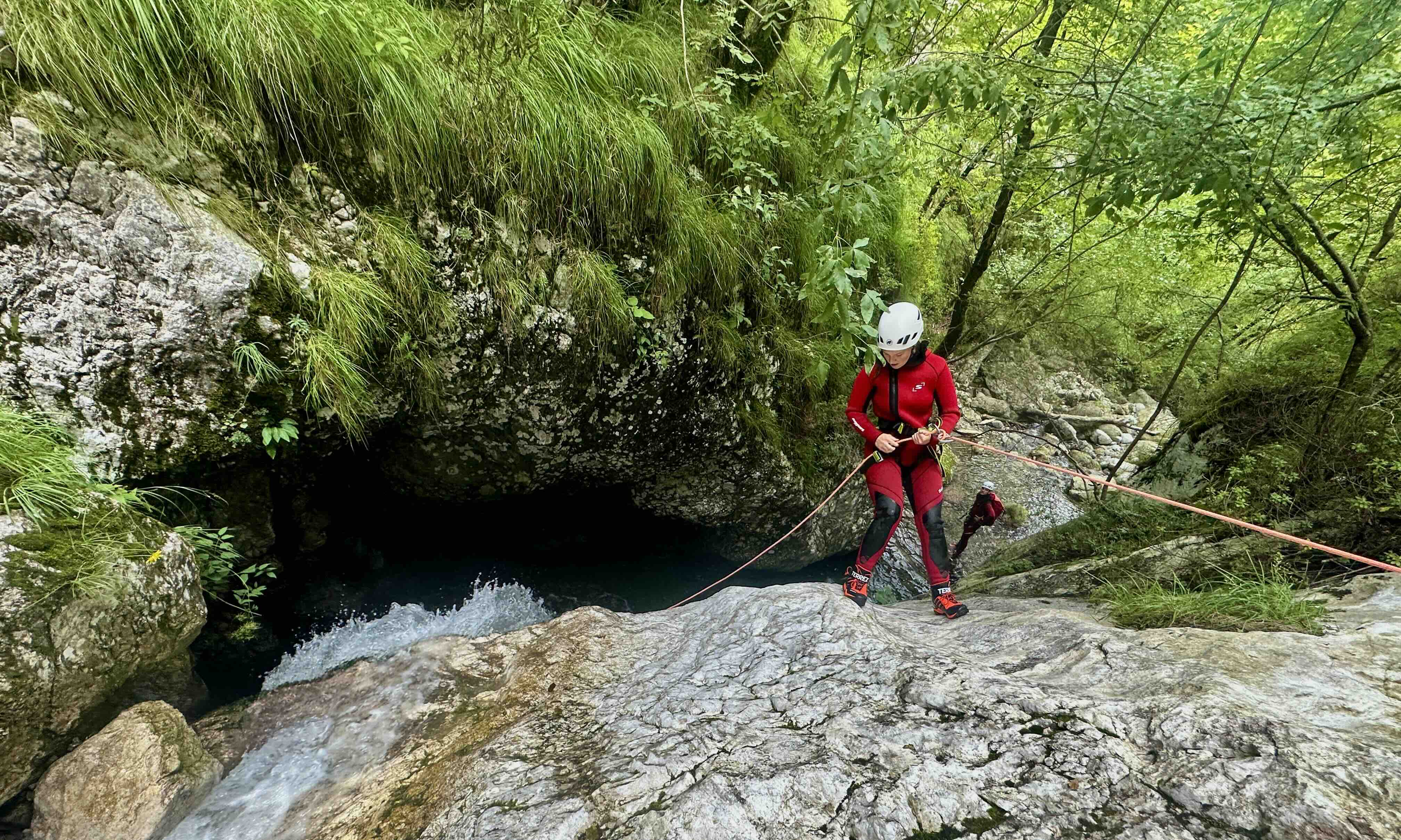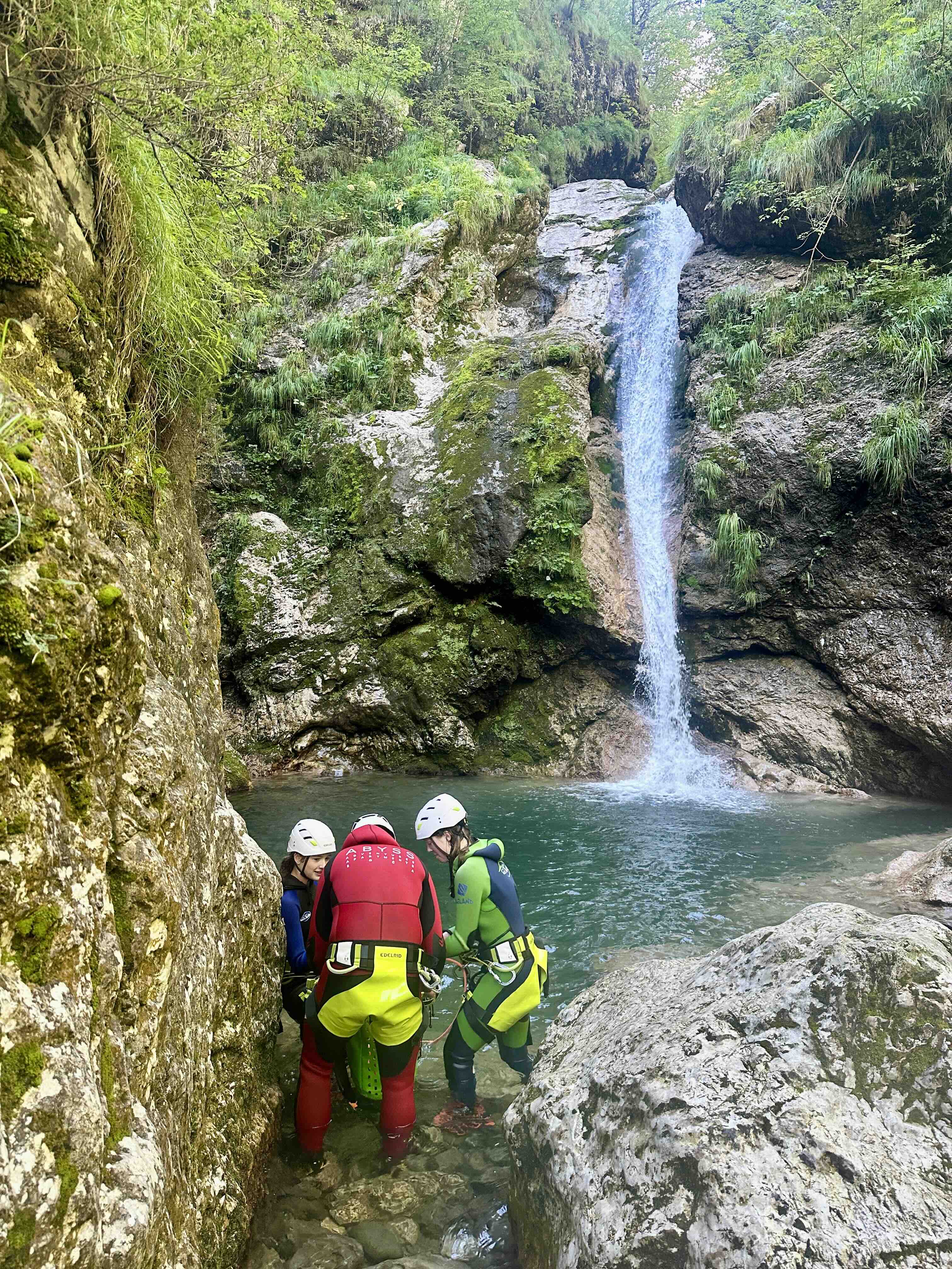 After two hours, our route joins with the classical Sušec Canyon. This section is more popular but still offers another 1.5 hours of adventure before you return to the van, making this one of the best canyoning experiences in Bovec, Slovenia.